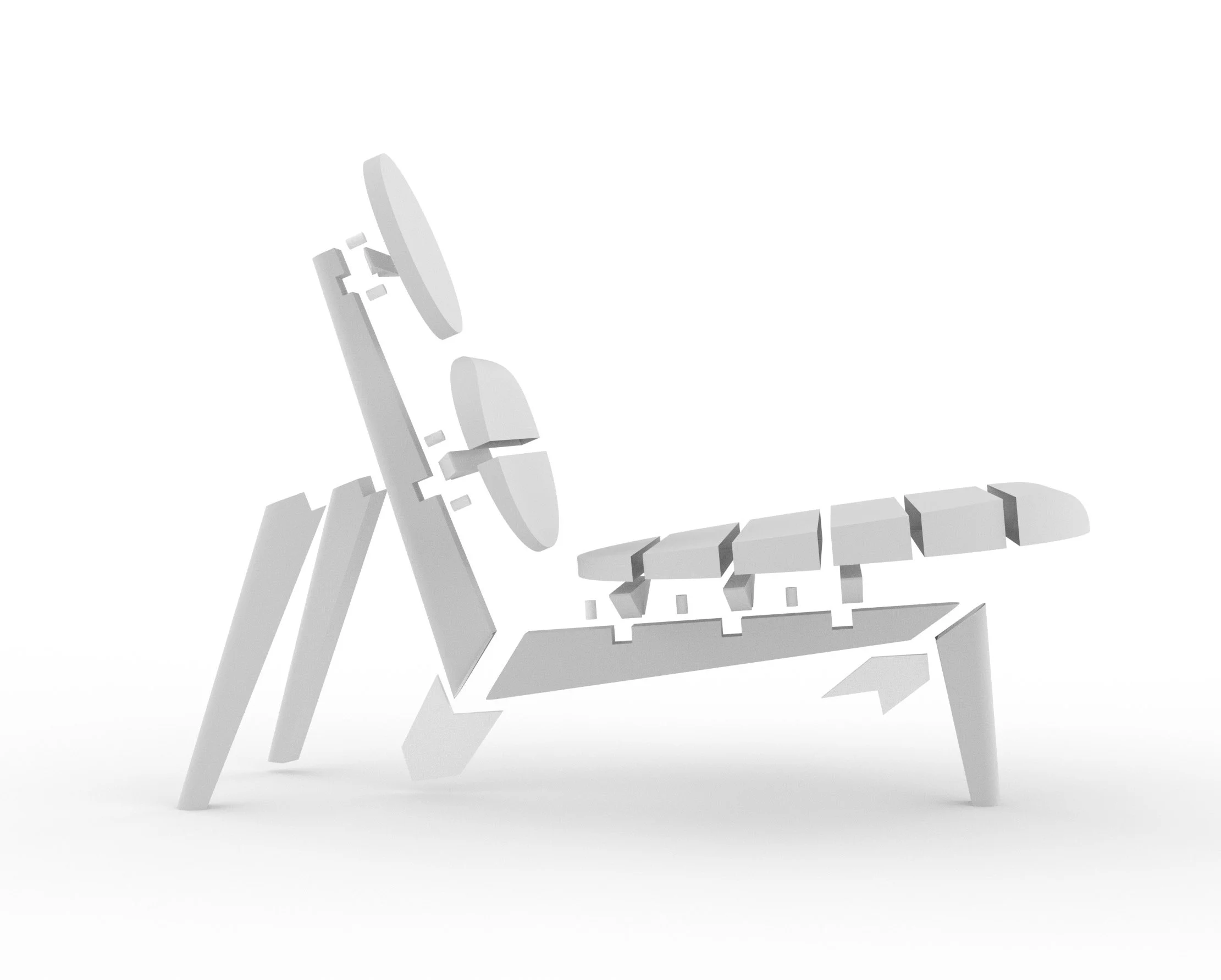 The Chair Structure pairs a visually-characteristic form with subtle functionality: A chair that is designed to feel more comfortable and sturdy than the distinct shapes would suggest.