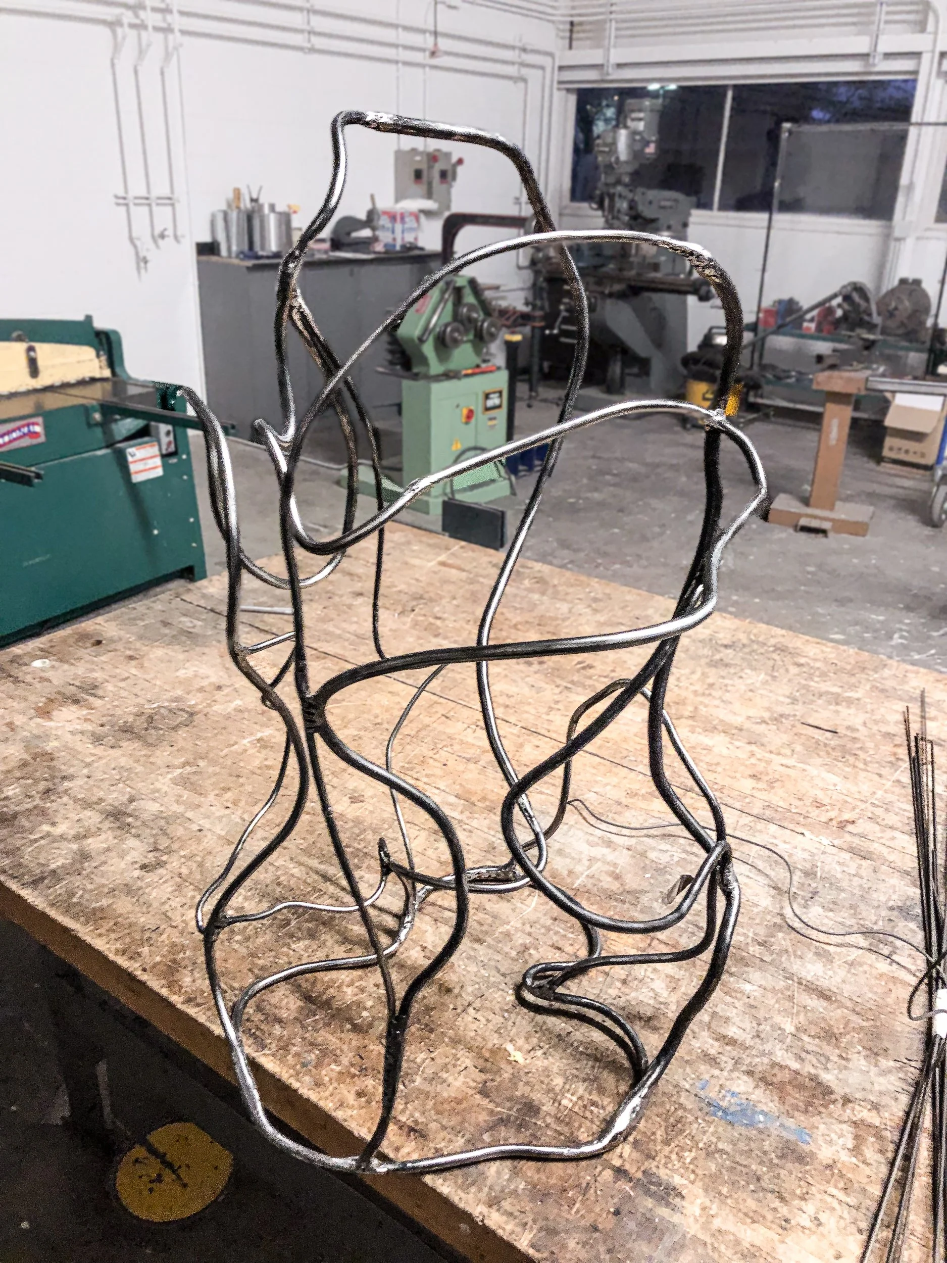 Constructed with steel rod, aluminum wire, and canvas (dyed).