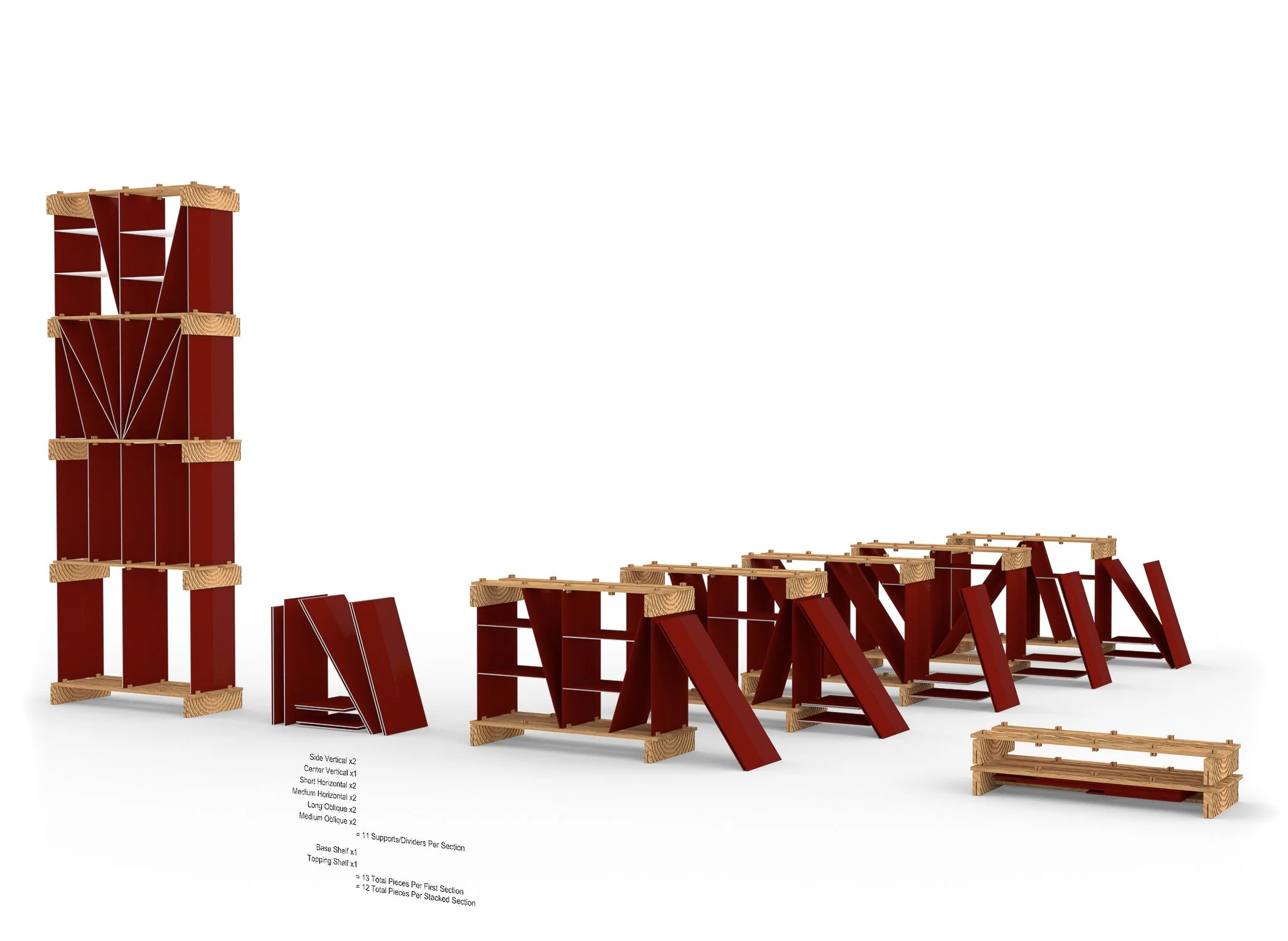 The Shelving System Utilizes Discarded Materials to address fluctuating organizational needs and visual monotony in relation to smaller and rented living spaces.